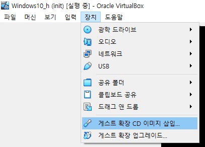 1. 가상 머신에서 [장치] -> [게스트 확장 CD 이미지 삽입...]