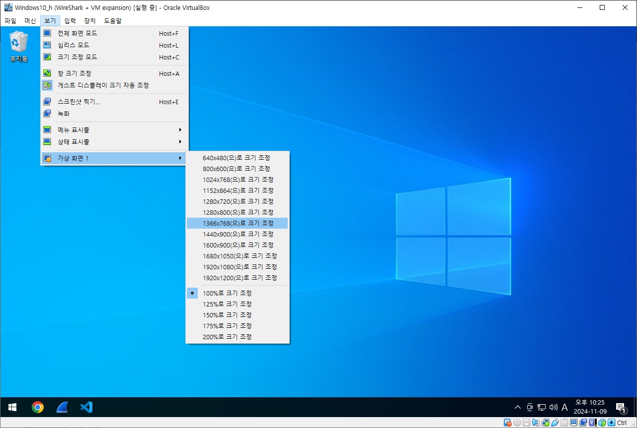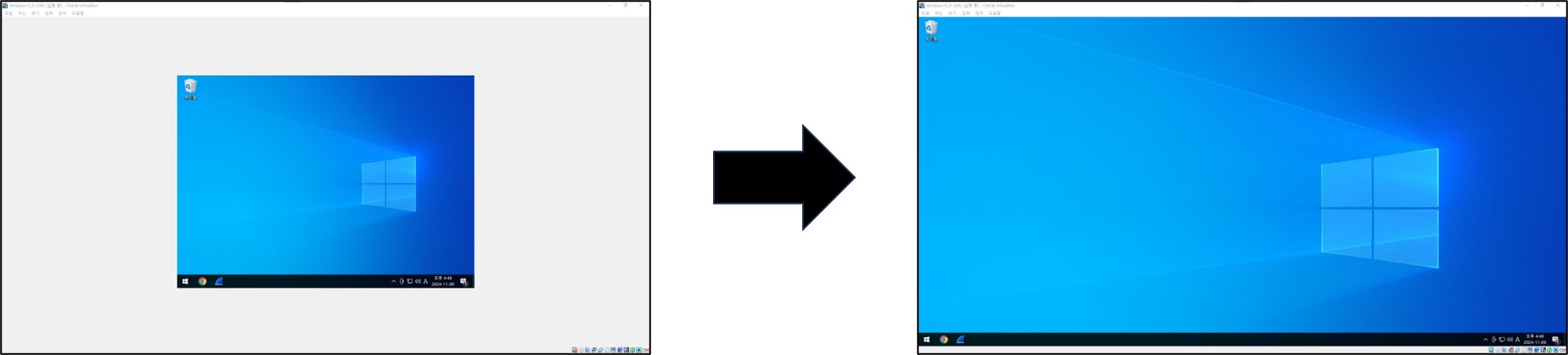 ※ 설치가 완료되면 창 크기를 변경 시키면 가상 머신 해상도가 자동 조절이 됩니다.