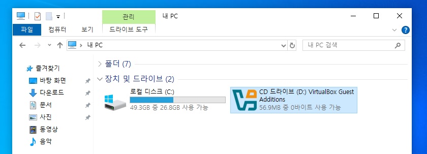 2. 가상 Win10에서 [VirtualBox Guest Additions] 설치 후 재부팅