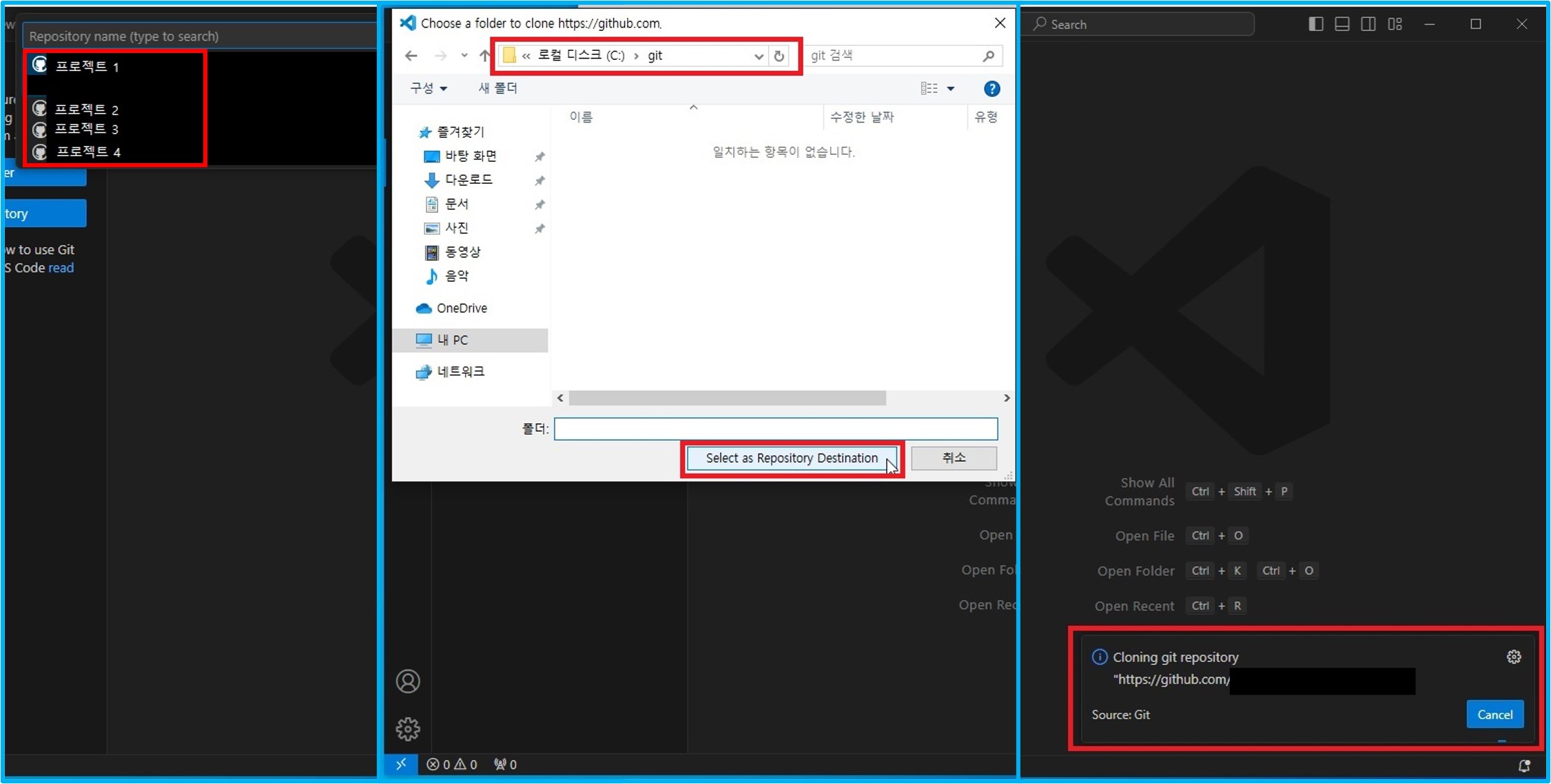 5. 프로젝트 경로 선택 후 [Select as Repository Destination]