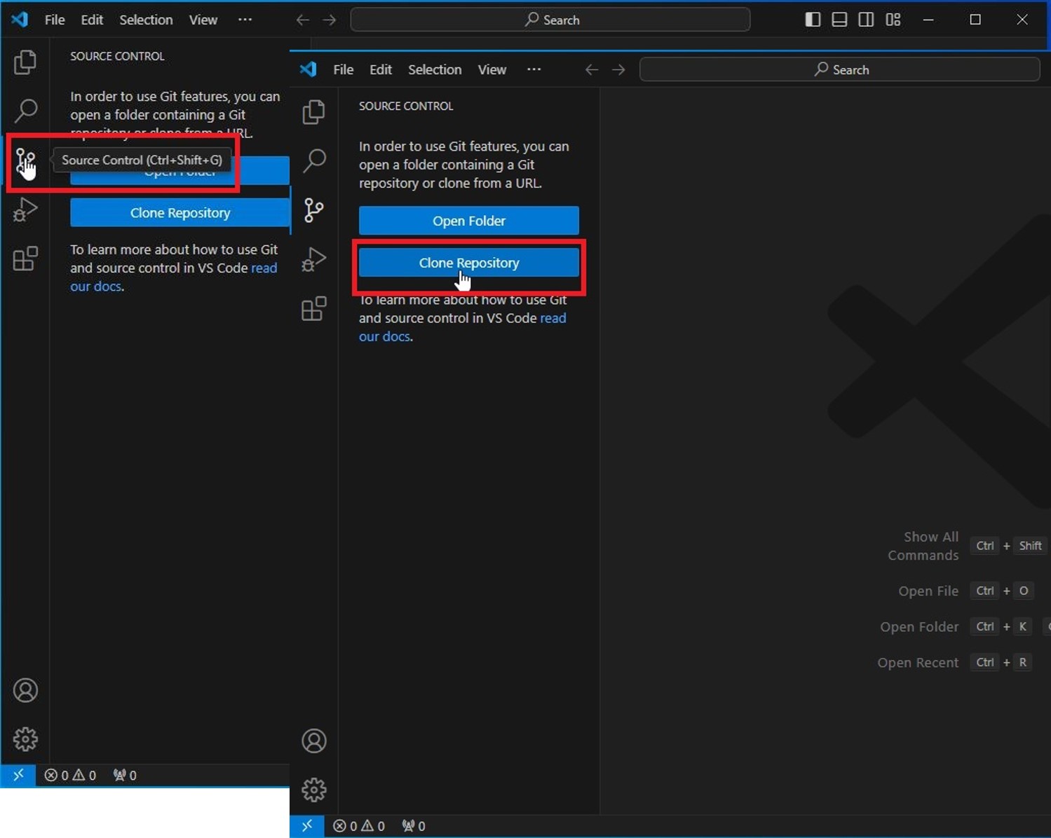 1. 왼쪽 [Source Control] 버튼 클릭 (아래 이미지에서 모양 확인!!)