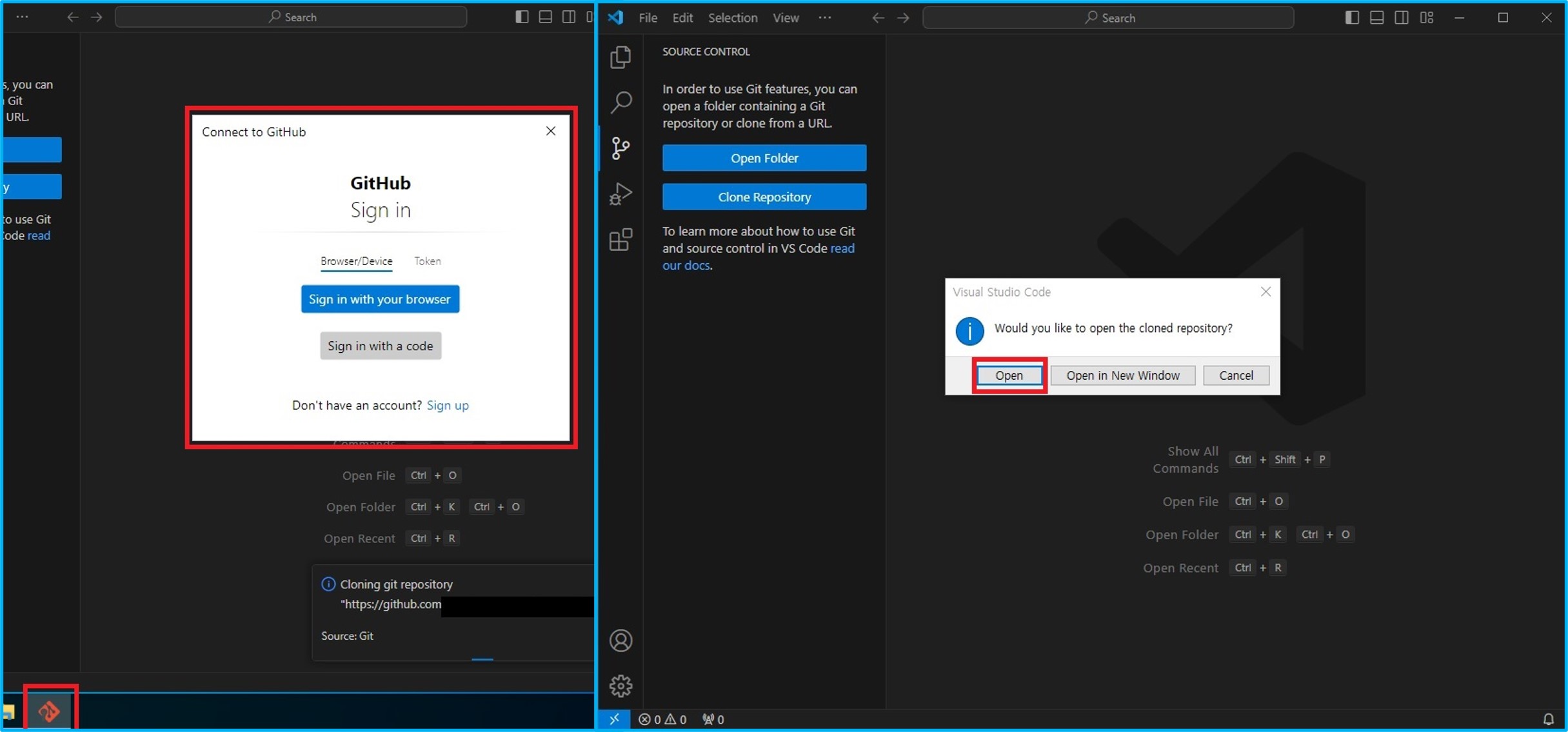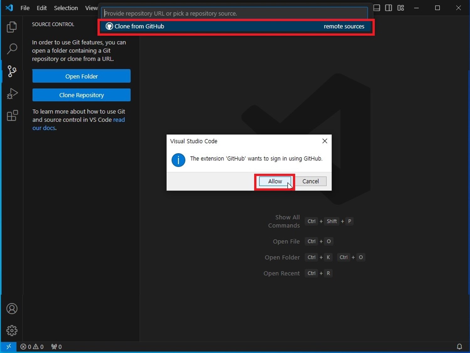 7. Github 로그인 창이 활성화 되는데 그냥 종료 해도 된다.
